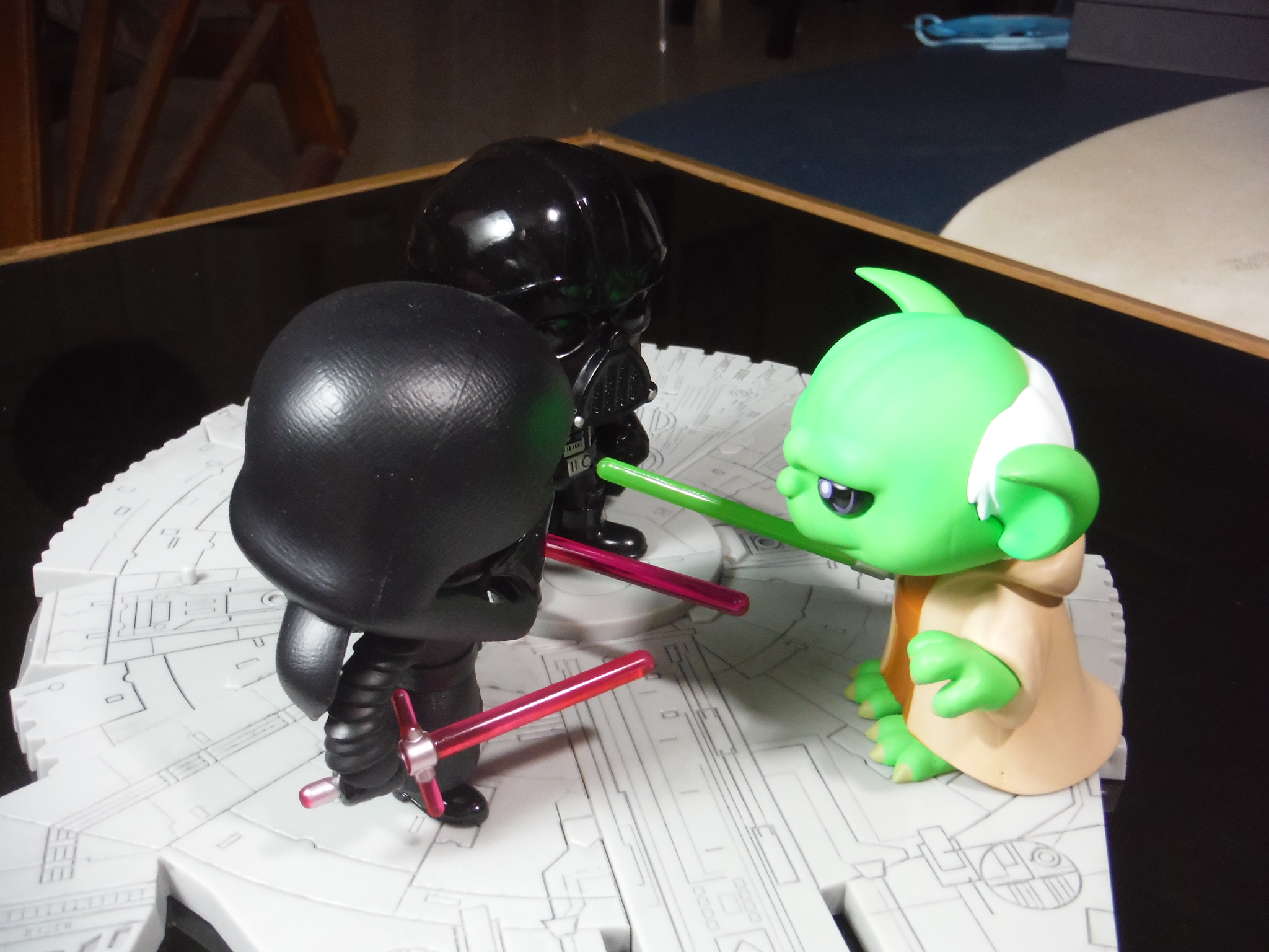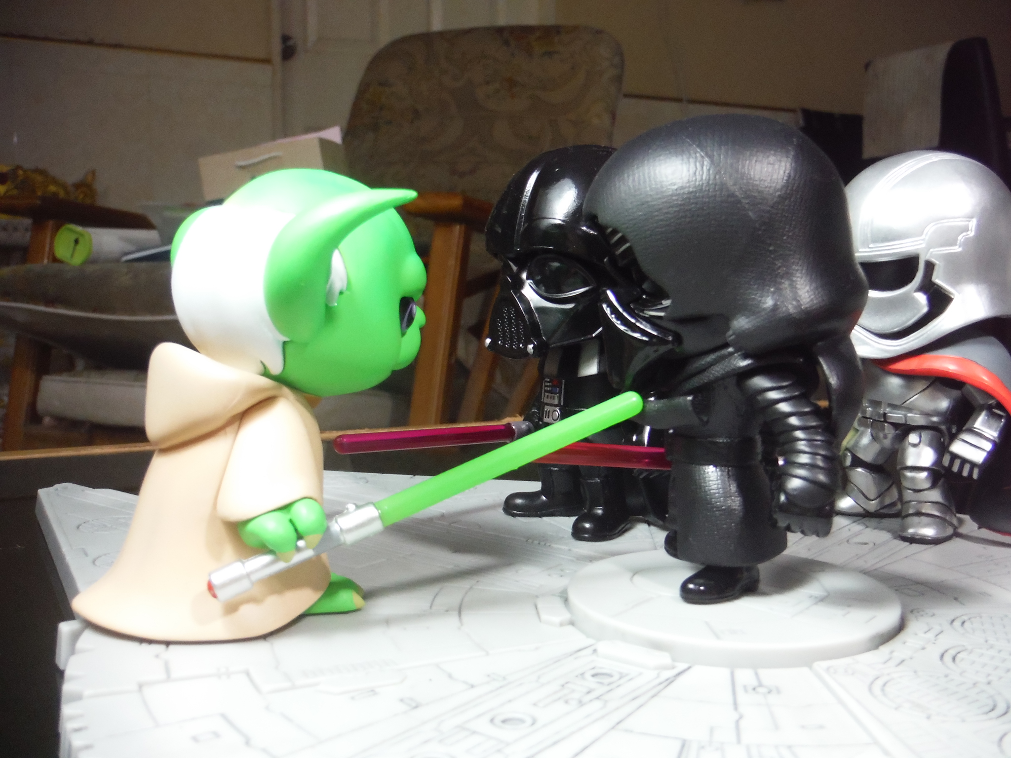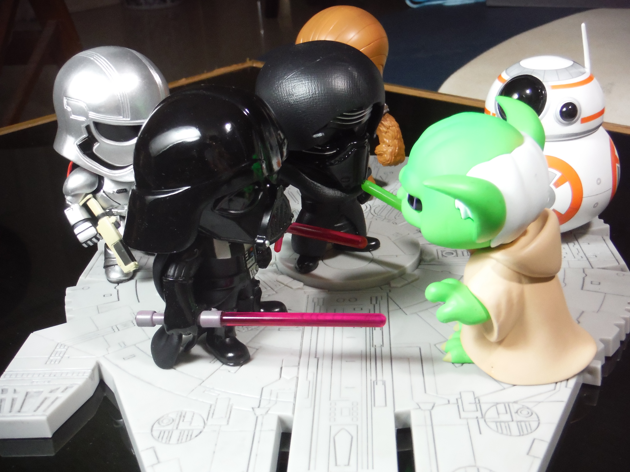 และฝ่ายของด้านสว่างผู้มีคุณธรรม นำโดย อาจารย์ Yoda และเพื่อนเก่า Chewbacca ตามด้วยหุ่นผู้ช่วย BB-8