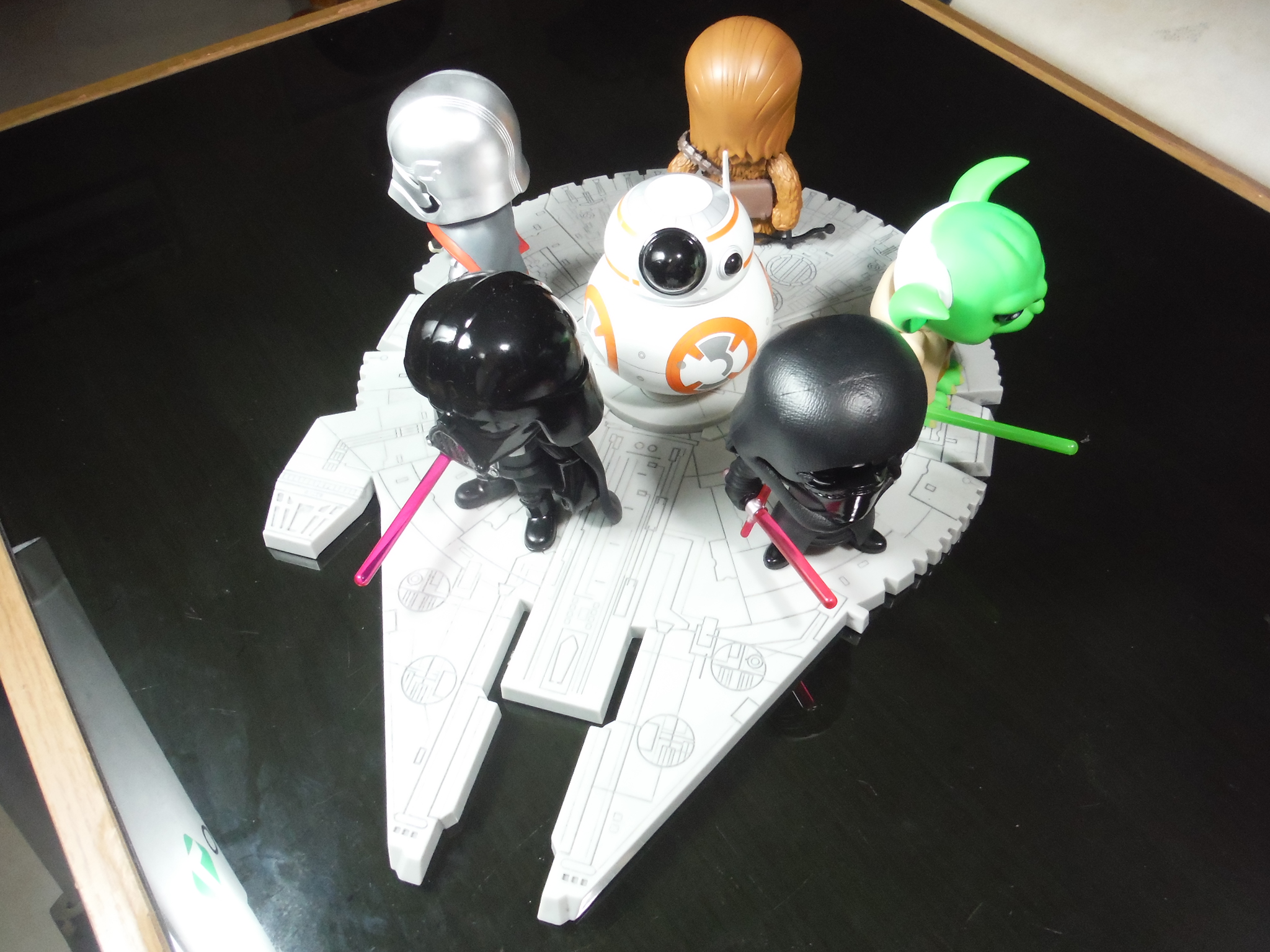 มีฐานรูปยาน Millennium Falcon พร้อมจุดยืด 6 จุดสำหรับวางฟิกเกอร์ได้ตามตำแหน่งที่ต้องการ